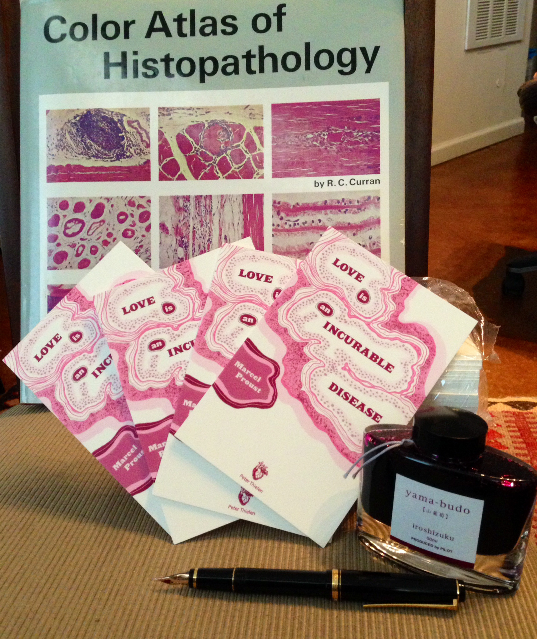 I've never been big on holidays, especially ones that are crudely commercialized, but I do enjoy making things for my friends and family. The pink and purple colors of histology specimens immediately suggested Valentine's Day cards, and by the holiday I produced this odd amalgam of scientific reference and the book covers of Alvin Lustig (The Sheltering Sky especially).